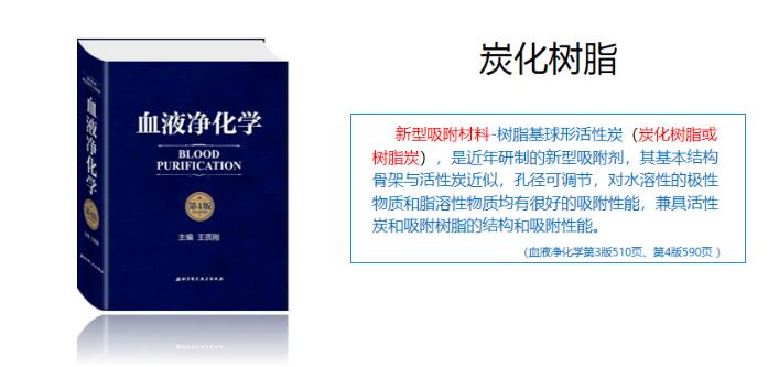 碳材料血液吸附剂的另一创新方向是新型吸附材料的研发,树脂碳(球形碳化树脂)是近年研制的新型吸附剂,碳化树脂呈球形,表面光滑,比表面积可达1000㎡/g以上。其基本结构骨架与活性炭近似,对水溶性的极性物质和脂溶性物质均有很好的吸附性能,兼具活性炭和吸附树脂的结构和吸附性能【(血液净化学第3版510页、第4版590页 )】。