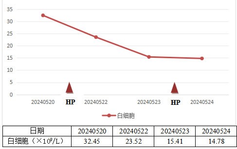 患者白细胞计数在CRRT+HP+ECMO治疗过程中显著下降。