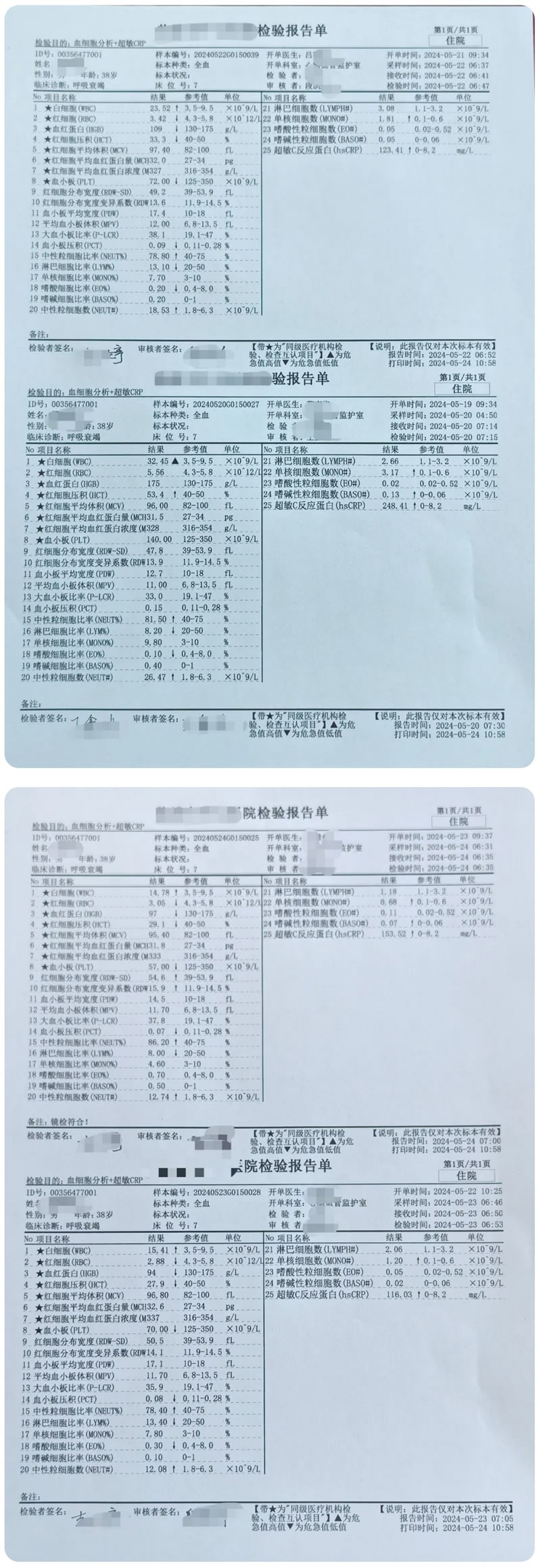 患者中性粒细胞计数在CRRT+HP+ECMO治疗过程中显著下降。